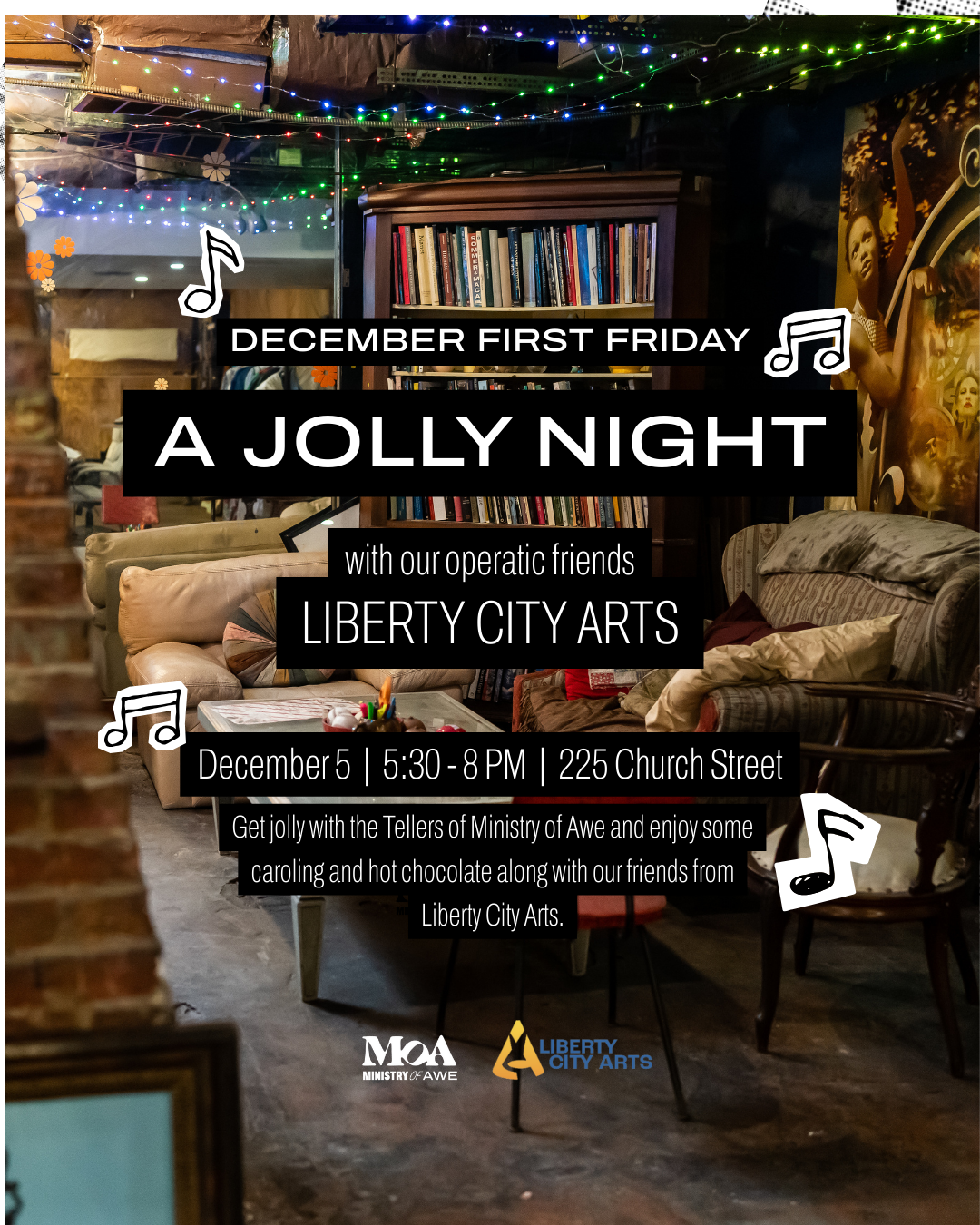 This upcoming First Friday event (December 5), we are co-hosting a Jolly Night with MoA! Whether you are an amateur opera star or a maestro on the kazoo, all are invited to join us in bringing some music to the Old City art walk.