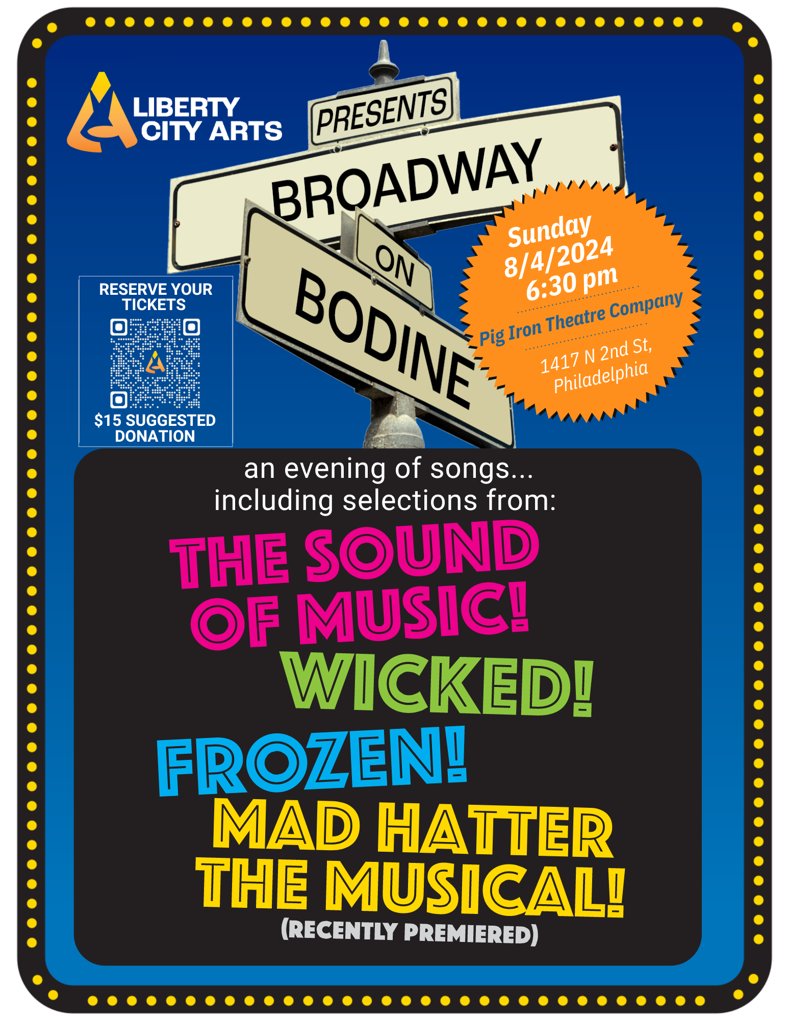 Join us for an enchanting evening of timeless Broadway classics at the Pig Iron Theatre Company, as ‘Broadway on Bodine’ Philadelphia based singers bring the vibrancy and talent of Broadway right to our doorstep. From show-stopping numbers to heartwarming ballads, immerse yourself in the rich tapestry of Broadway’s greatest hits, performed with unmatched passion and flair. Don’t miss this unforgettable celebration of musical theater that promises to captivate audiences of all ages.